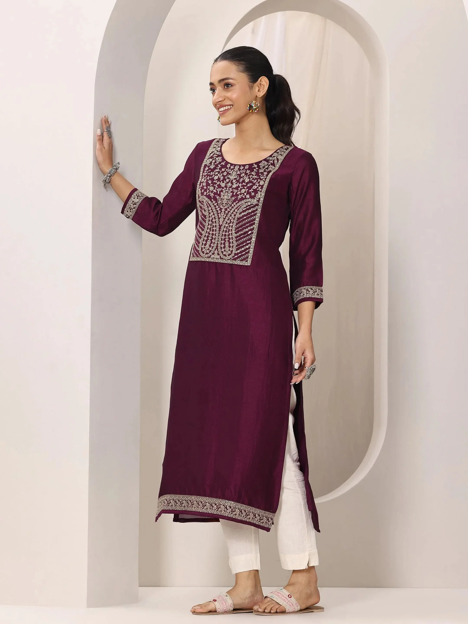 Wine Yoke Design Silk Kurta