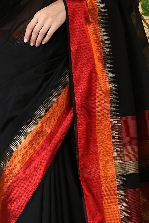 Womens Maheshwari Silk Cotton Handloom Hanwoven Saree With blouse piece